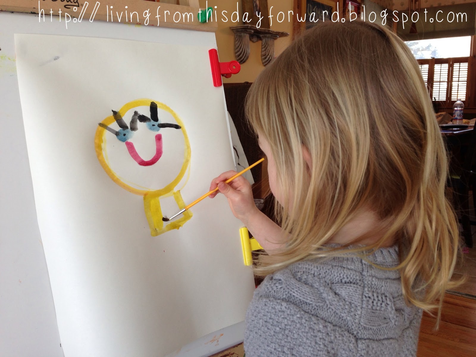 She walked in with her eyes pinched tightly closed. When she opened them a big smile slowly crept across her face. She climbed up on her bed, sat on the side rail, and squealed. She was thrilled and dove right into painting the very first masterpiece for her personal gallery…